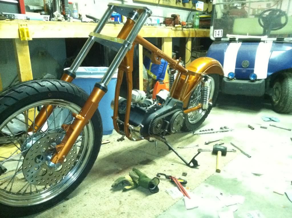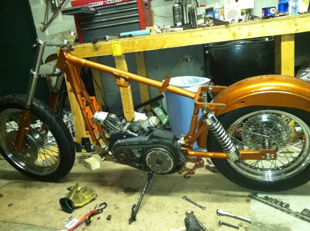 Installed motor...forks...swingarm...tires...shocks today....sheww I'm pooped :-)